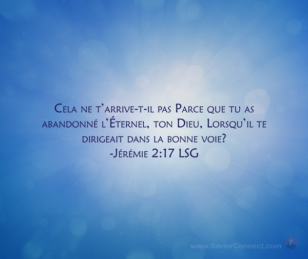 Cela ne t'arrive-t-il pas Parce que tu as abandonné l'Éternel, ton Dieu, Lorsqu'il te dirigeait dans la bonne voie? -Jérémie 2:17 LSG