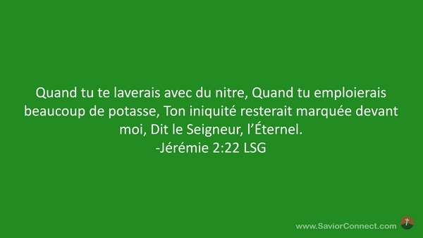 Quand tu te laverais avec du nitre, Quand tu emploierais beaucoup de potasse, Ton iniquité resterait marquée devant moi, Dit le Seigneur, l'Éternel. -Jérémie 2:22 LSG