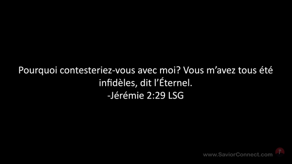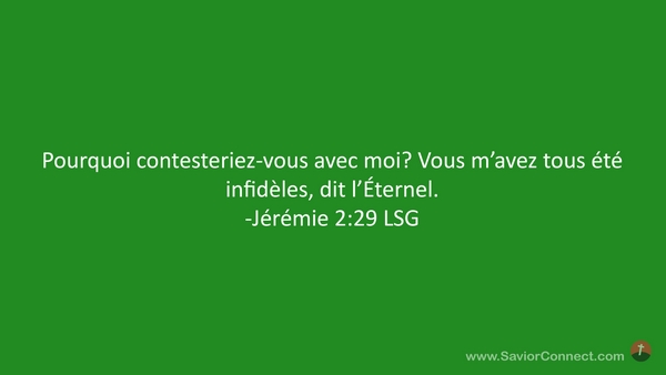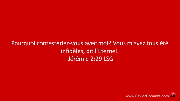 Pourquoi contesteriez-vous avec moi? Vous m'avez tous été infidèles, dit l'Éternel. -Jérémie 2:29 LSG