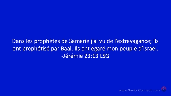 Dans les prophètes de Samarie j'ai vu de l'extravagance; Ils ont prophétisé par Baal, Ils ont égaré mon peuple d'Israël. -Jérémie 23:13 LSG