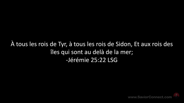 À tous les rois de Tyr, à tous les rois de Sidon, Et aux rois des îles qui sont au delà de la mer; -Jérémie 25:22 LSG