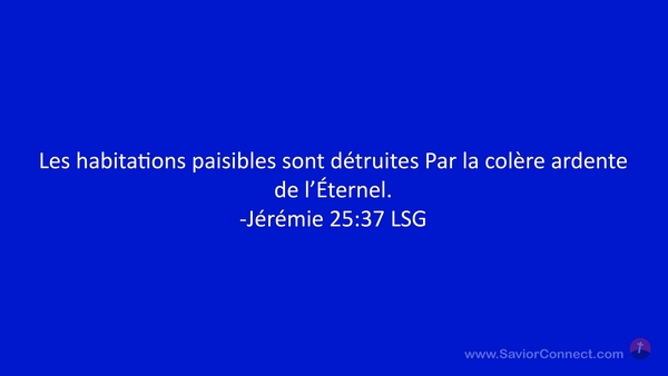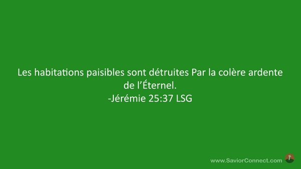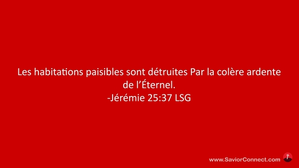 Les habitations paisibles sont détruites Par la colère ardente de l'Éternel. -Jérémie 25:37 LSG