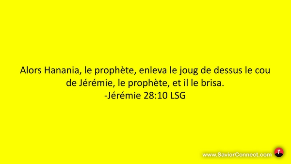 Alors Hanania, le prophète, enleva le joug de dessus le cou de Jérémie, le prophète, et il le brisa. -Jérémie 28:10 LSG