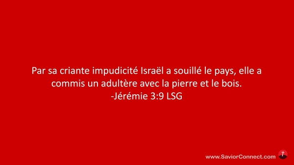 Par sa criante impudicité Israël a souillé le pays, elle a commis un adultère avec la pierre et le bois. -Jérémie 3:9 LSG