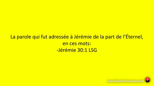 La parole qui fut adressée à Jérémie de la part de l'Éternel, en ces mots: -Jérémie 30:1 LSG