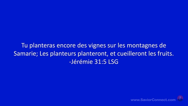 Tu planteras encore des vignes sur les montagnes de Samarie; Les planteurs planteront, et cueilleront les fruits. -Jérémie 31:5 LSG