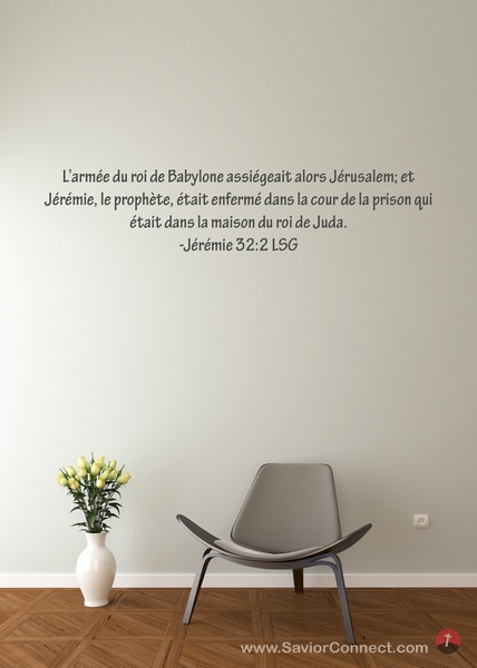 L'armée du roi de Babylone assiégeait alors Jérusalem; et Jérémie, le prophète, était enfermé dans la cour de la prison qui était dans la maison du roi de Juda. -Jérémie 32:2 LSG