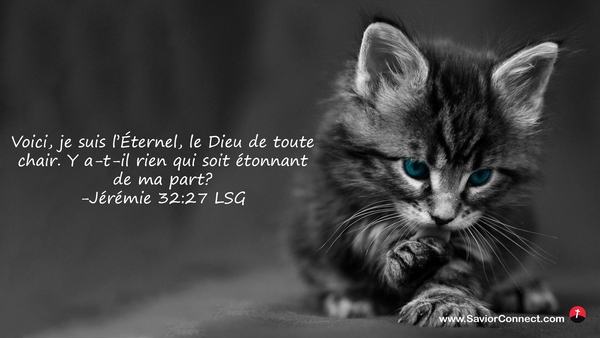 Voici, je suis l'Éternel, le Dieu de toute chair. Y a-t-il rien qui soit étonnant de ma part? -Jérémie 32:27 LSG