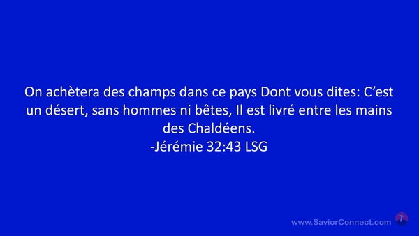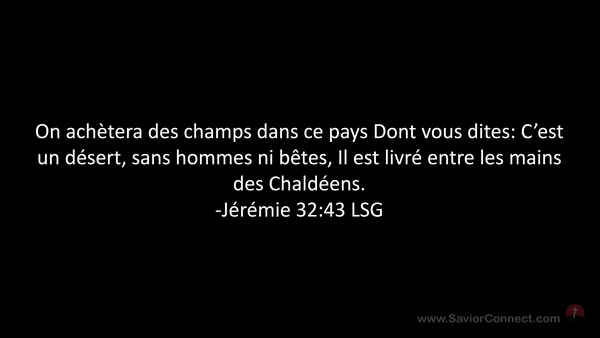 On achètera des champs dans ce pays Dont vous dites: C'est un désert, sans hommes ni bêtes, Il est livré entre les mains des Chaldéens. -Jérémie 32:43 LSG