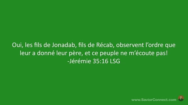 Oui, les fils de Jonadab, fils de Récab, observent l'ordre que leur a donné leur père, et ce peuple ne m'écoute pas! -Jérémie 35:16 LSG