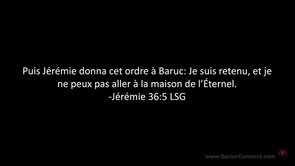 Puis Jérémie donna cet ordre à Baruc: Je suis retenu, et je ne peux pas aller à la maison de l'Éternel. -Jérémie 36:5 LSG