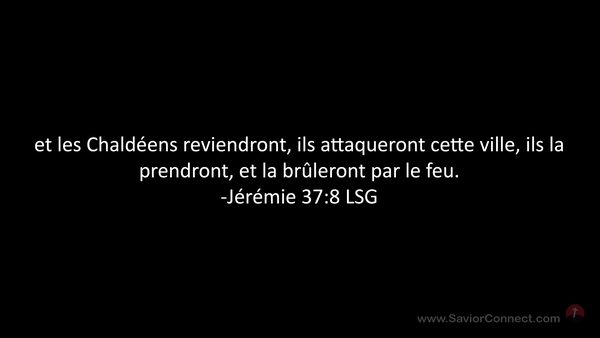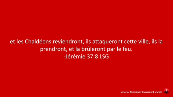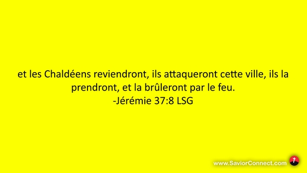 et les Chaldéens reviendront, ils attaqueront cette ville, ils la prendront, et la brûleront par le feu. -Jérémie 37:8 LSG