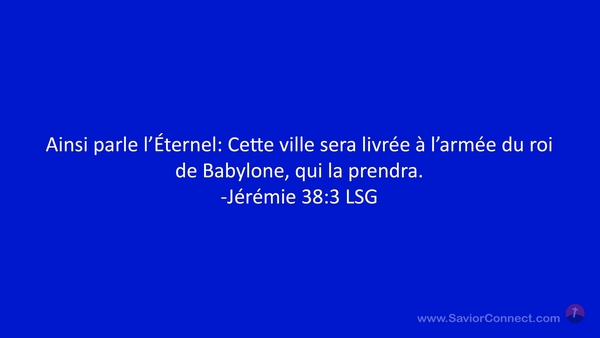 Ainsi parle l'Éternel: Cette ville sera livrée à l'armée du roi de Babylone, qui la prendra. -Jérémie 38:3 LSG