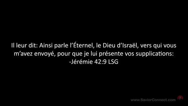 Il leur dit: Ainsi parle l'Éternel, le Dieu d'Israël, vers qui vous m'avez envoyé, pour que je lui présente vos supplications: -Jérémie 42:9 LSG