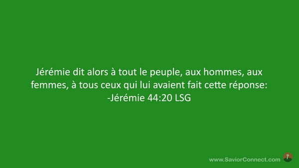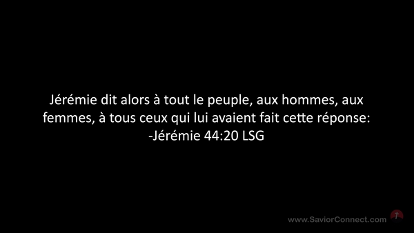 Jérémie dit alors à tout le peuple, aux hommes, aux femmes, à tous ceux qui lui avaient fait cette réponse: -Jérémie 44:20 LSG