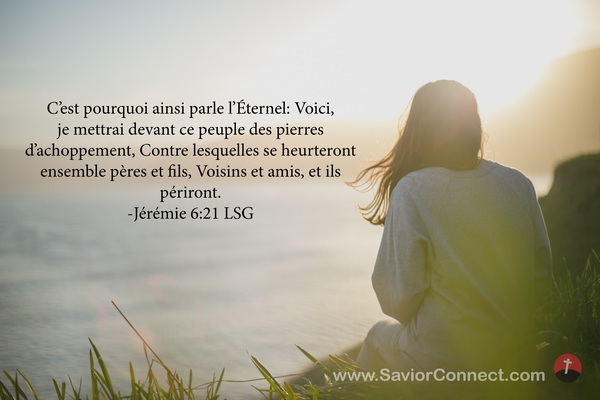 C'est pourquoi ainsi parle l'Éternel: Voici, je mettrai devant ce peuple des pierres d'achoppement, Contre lesquelles se heurteront ensemble pères et fils, Voisins et amis, et ils périront. -Jérémie 6:21 LSG