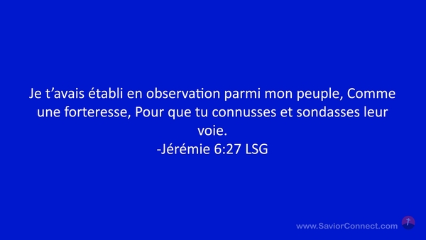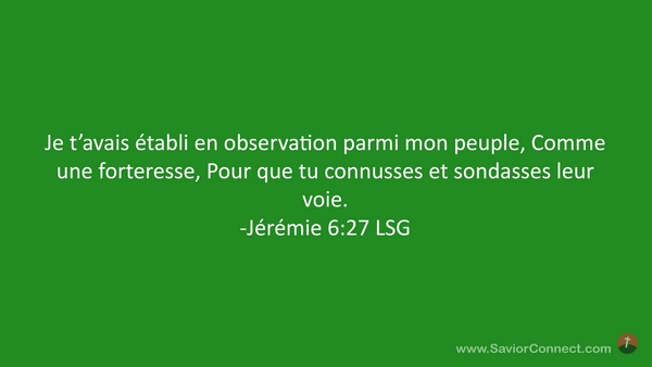 Je t'avais établi en observation parmi mon peuple, Comme une forteresse, Pour que tu connusses et sondasses leur voie. -Jérémie 6:27 LSG