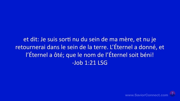 et dit: Je suis sorti nu du sein de ma mère, et nu je retournerai dans le sein de la terre. L'Éternel a donné, et l'Éternel a ôté; que le nom de l'Éternel soit béni! -Job 1:21 LSG