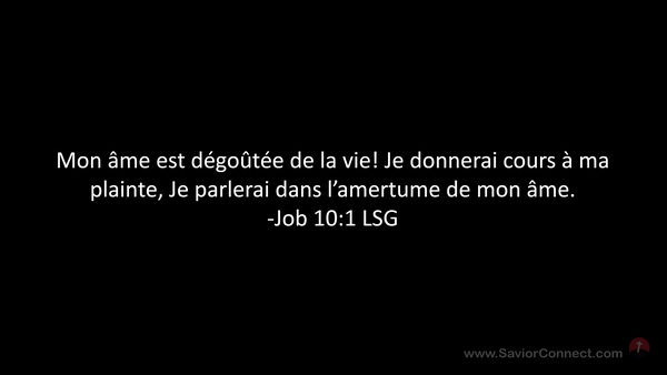 Mon âme est dégoûtée de la vie! Je donnerai cours à ma plainte, Je parlerai dans l'amertume de mon âme. -Job 10:1 LSG