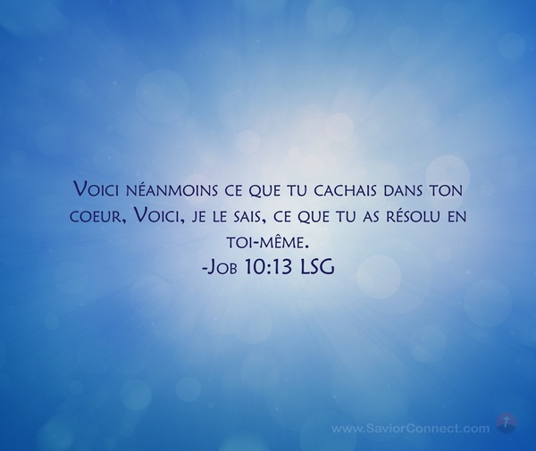 Voici néanmoins ce que tu cachais dans ton coeur, Voici, je le sais, ce que tu as résolu en toi-même. -Job 10:13 LSG