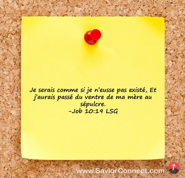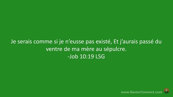 Je serais comme si je n'eusse pas existé, Et j'aurais passé du ventre de ma mère au sépulcre. -Job 10:19 LSG