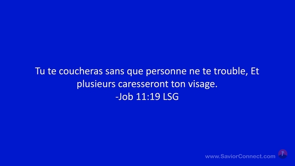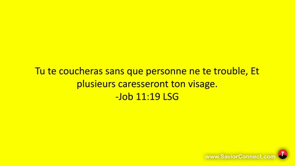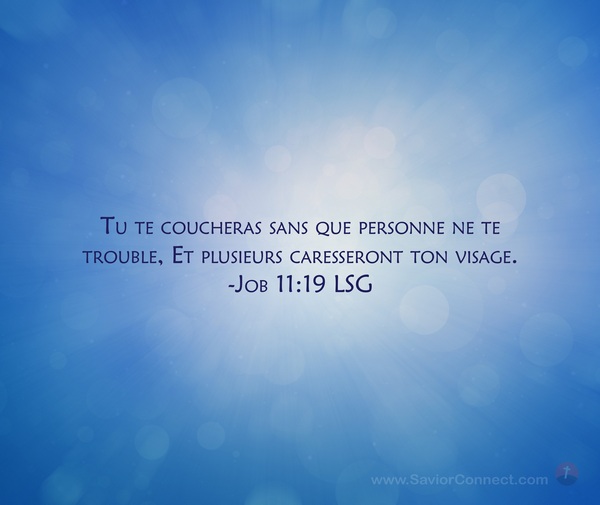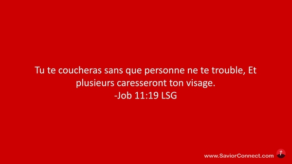 Tu te coucheras sans que personne ne te trouble, Et plusieurs caresseront ton visage. -Job 11:19 LSG