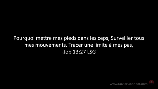 Pourquoi mettre mes pieds dans les ceps, Surveiller tous mes mouvements, Tracer une limite à mes pas, -Job 13:27 LSG