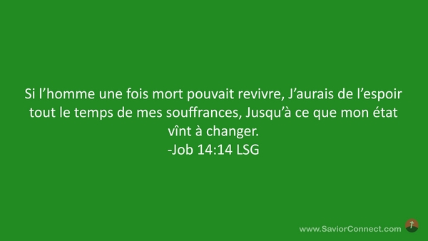 Si l'homme une fois mort pouvait revivre, J'aurais de l'espoir tout le temps de mes souffrances, Jusqu'à ce que mon état vînt à changer. -Job 14:14 LSG