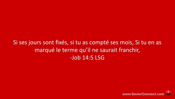 Si ses jours sont fixés, si tu as compté ses mois, Si tu en as marqué le terme qu'il ne saurait franchir, -Job 14:5 LSG