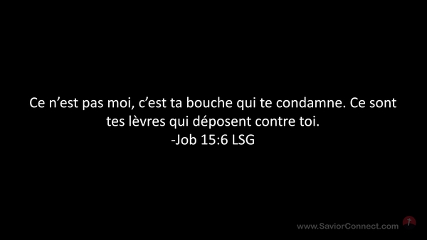 Ce n'est pas moi, c'est ta bouche qui te condamne. Ce sont tes lèvres qui déposent contre toi. -Job 15:6 LSG