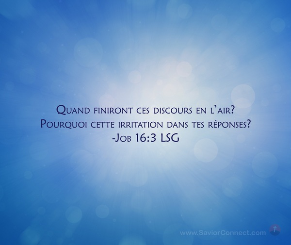Quand finiront ces discours en l'air? Pourquoi cette irritation dans tes réponses? -Job 16:3 LSG