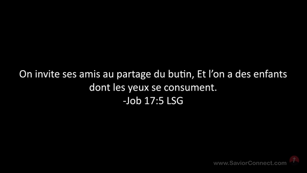 On invite ses amis au partage du butin, Et l'on a des enfants dont les yeux se consument. -Job 17:5 LSG
