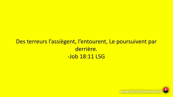 Des terreurs l'assiègent, l'entourent, Le poursuivent par derrière. -Job 18:11 LSG