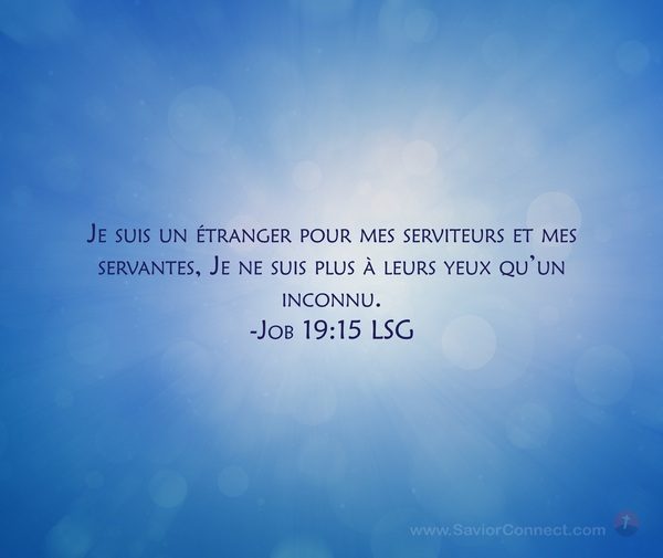 Je suis un étranger pour mes serviteurs et mes servantes, Je ne suis plus à leurs yeux qu'un inconnu. -Job 19:15 LSG