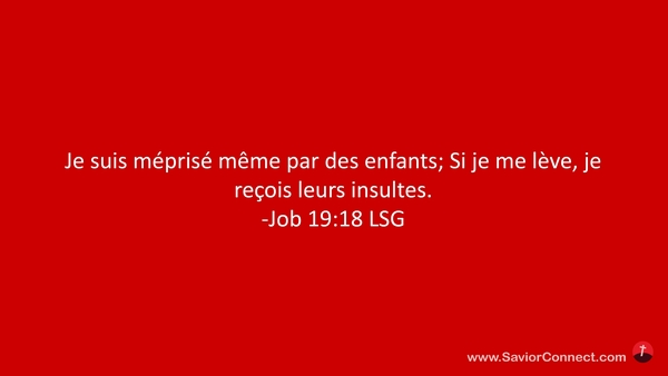 Je suis méprisé même par des enfants; Si je me lève, je reçois leurs insultes. -Job 19:18 LSG