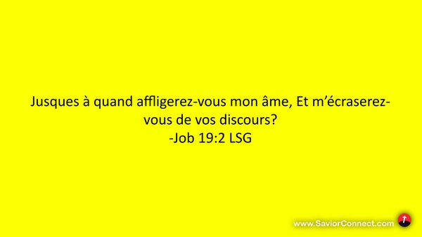 Jusques à quand affligerez-vous mon âme, Et m'écraserez-vous de vos discours? -Job 19:2 LSG