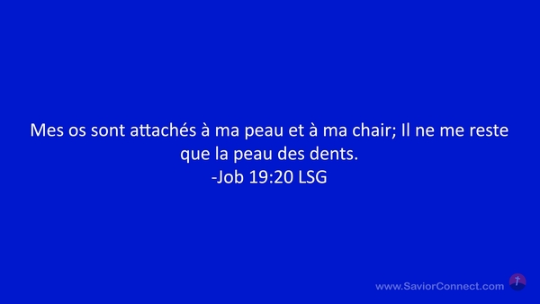 Mes os sont attachés à ma peau et à ma chair; Il ne me reste que la peau des dents. -Job 19:20 LSG