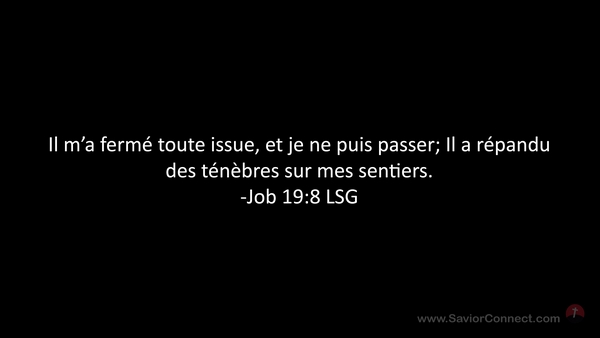 Il m'a fermé toute issue, et je ne puis passer; Il a répandu des ténèbres sur mes sentiers. -Job 19:8 LSG