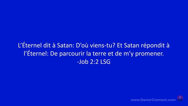 L'Éternel dit à Satan: D'où viens-tu? Et Satan répondit à l'Éternel: De parcourir la terre et de m'y promener. -Job 2:2 LSG