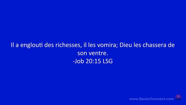 Il a englouti des richesses, il les vomira; Dieu les chassera de son ventre. -Job 20:15 LSG