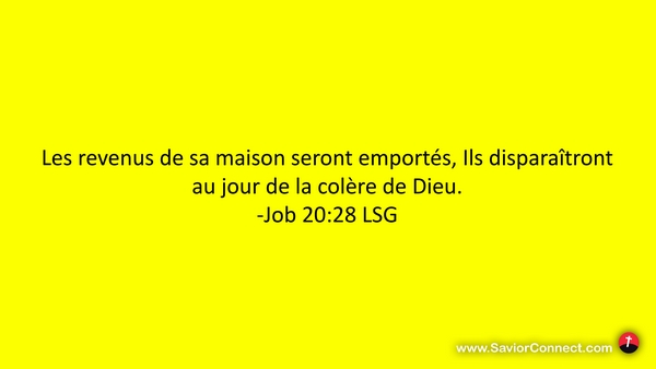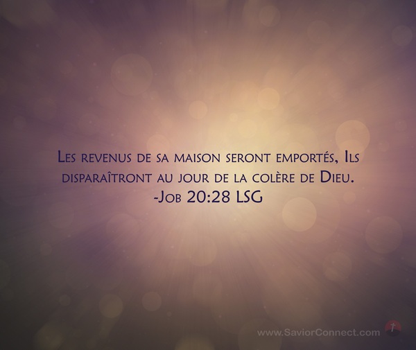 Les revenus de sa maison seront emportés, Ils disparaîtront au jour de la colère de Dieu. -Job 20:28 LSG