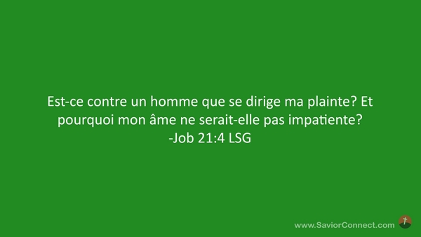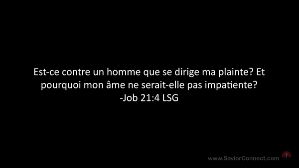 Est-ce contre un homme que se dirige ma plainte? Et pourquoi mon âme ne serait-elle pas impatiente? -Job 21:4 LSG