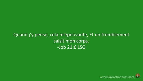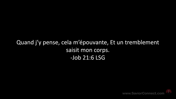 Quand j'y pense, cela m'épouvante, Et un tremblement saisit mon corps. -Job 21:6 LSG