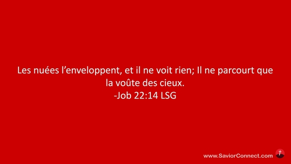 Les nuées l'enveloppent, et il ne voit rien; Il ne parcourt que la voûte des cieux. -Job 22:14 LSG