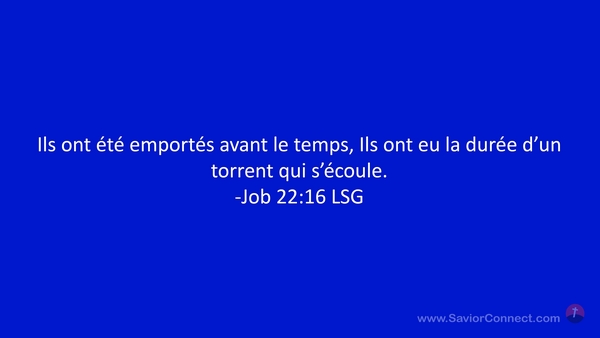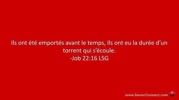 Ils ont été emportés avant le temps, Ils ont eu la durée d'un torrent qui s'écoule. -Job 22:16 LSG