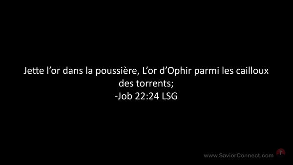 Jette l'or dans la poussière, L'or d'Ophir parmi les cailloux des torrents; -Job 22:24 LSG
