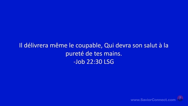 Il délivrera même le coupable, Qui devra son salut à la pureté de tes mains. -Job 22:30 LSG