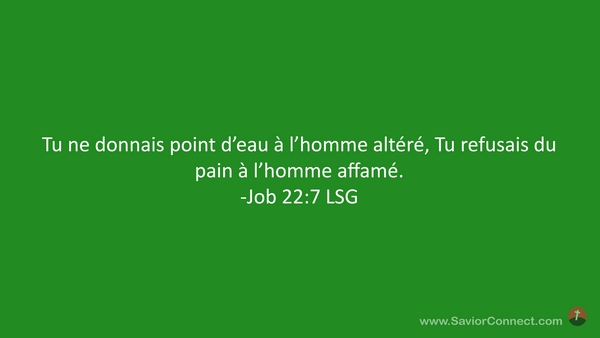 Tu ne donnais point d'eau à l'homme altéré, Tu refusais du pain à l'homme affamé. -Job 22:7 LSG