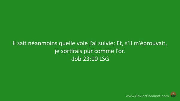 Il sait néanmoins quelle voie j'ai suivie; Et, s'il m'éprouvait, je sortirais pur comme l'or. -Job 23:10 LSG