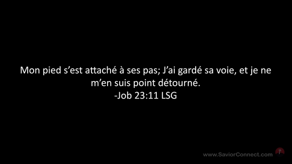 Mon pied s'est attaché à ses pas; J'ai gardé sa voie, et je ne m'en suis point détourné. -Job 23:11 LSG